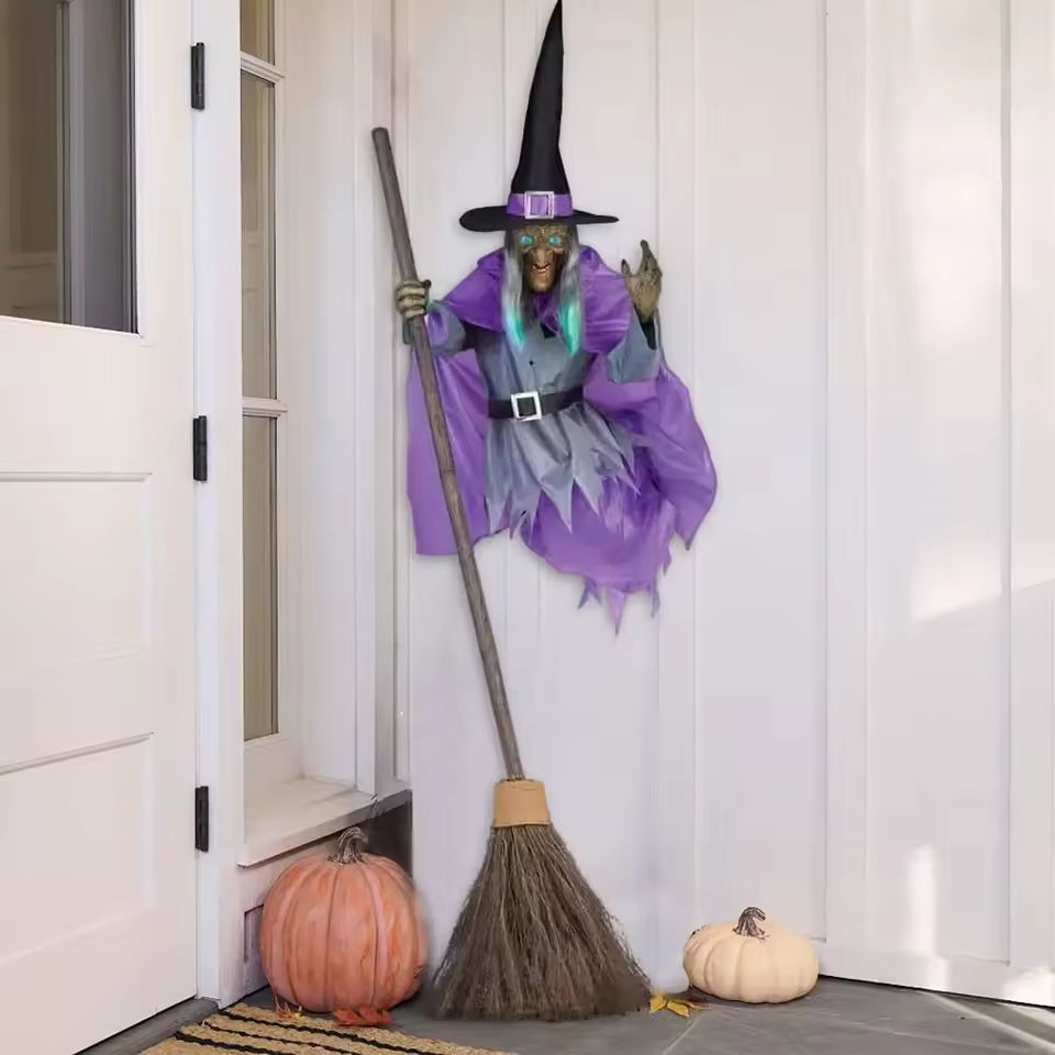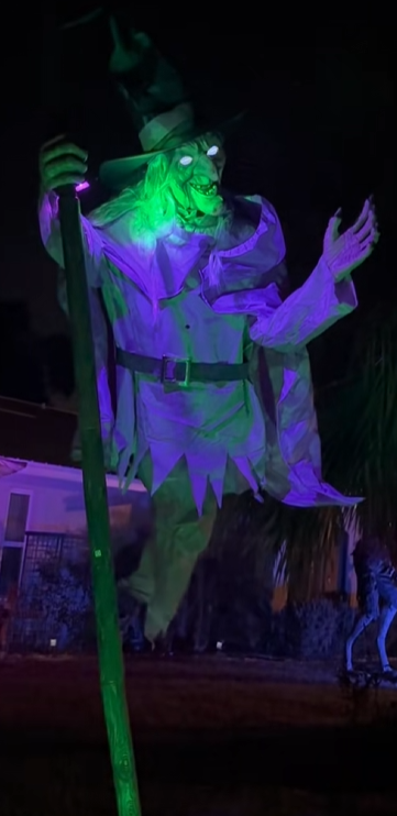 Standing 12 feet tall, this witch is motion-activated with glowing LED eyes and eerie sounds that bring your yard to life.